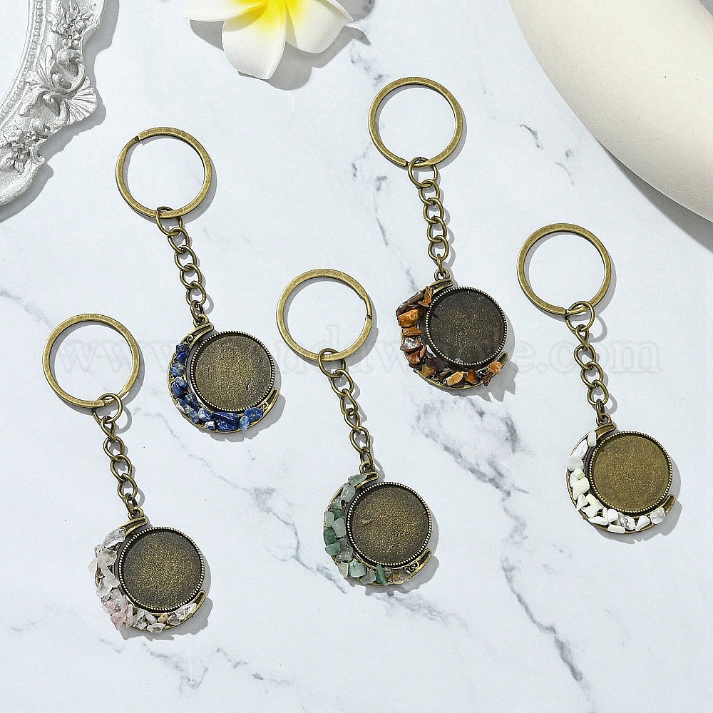 Брелки из сплава с натуральным лазуритом, говлитом, авантюрином, тигровым глазом и розовым кварцем, с железными разрезными брелоками