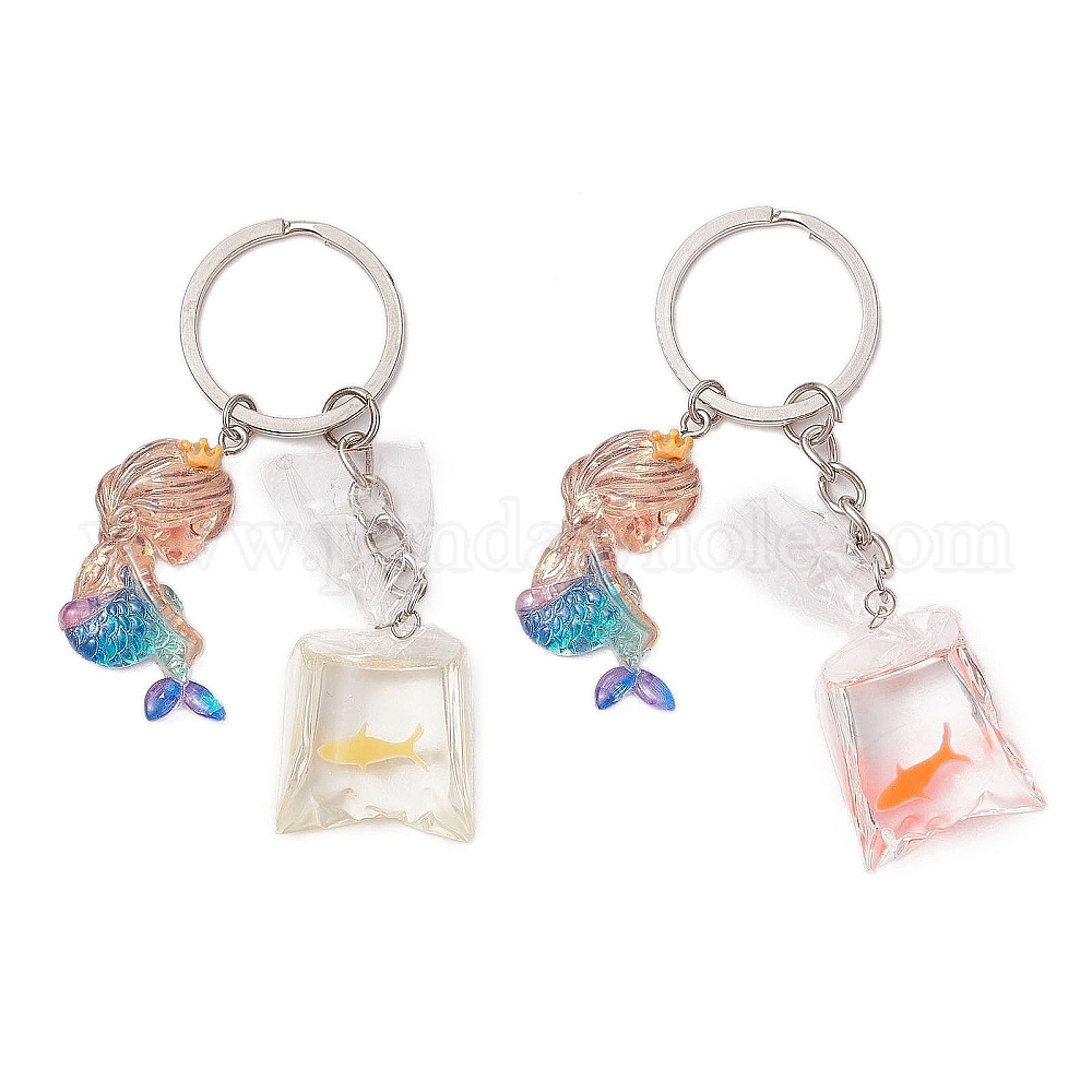 2шт. брелок из смолы, с железными кольцами, русалка, рыба
