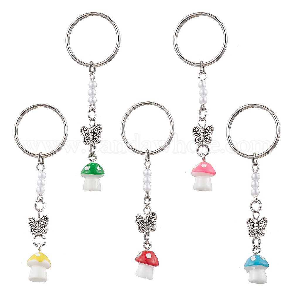 Брелок из акрилового пластика с имитацией жемчуга, бабочка и гриб