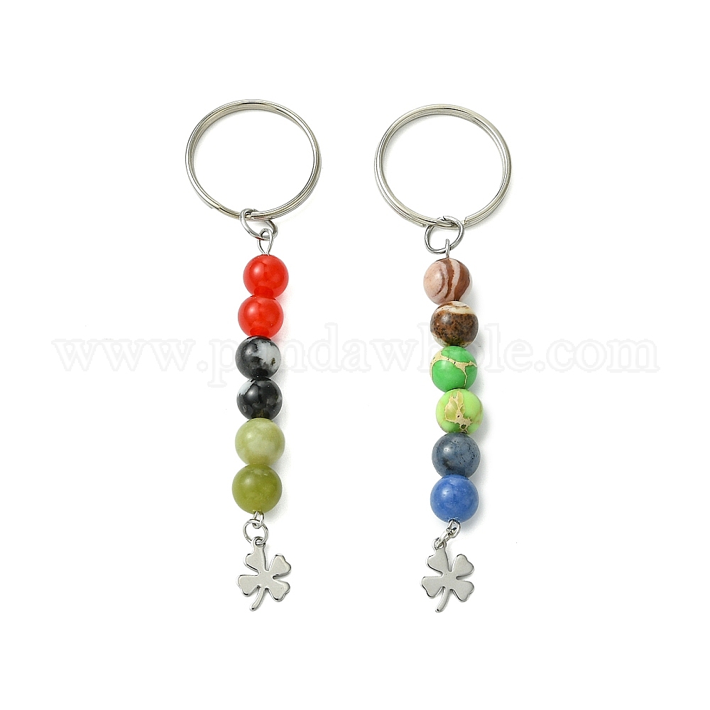 2шт брелок из натурального драгоценного камня, с клевером 201 подвески из нержавеющей стали и железные разъемные кольца для ключей