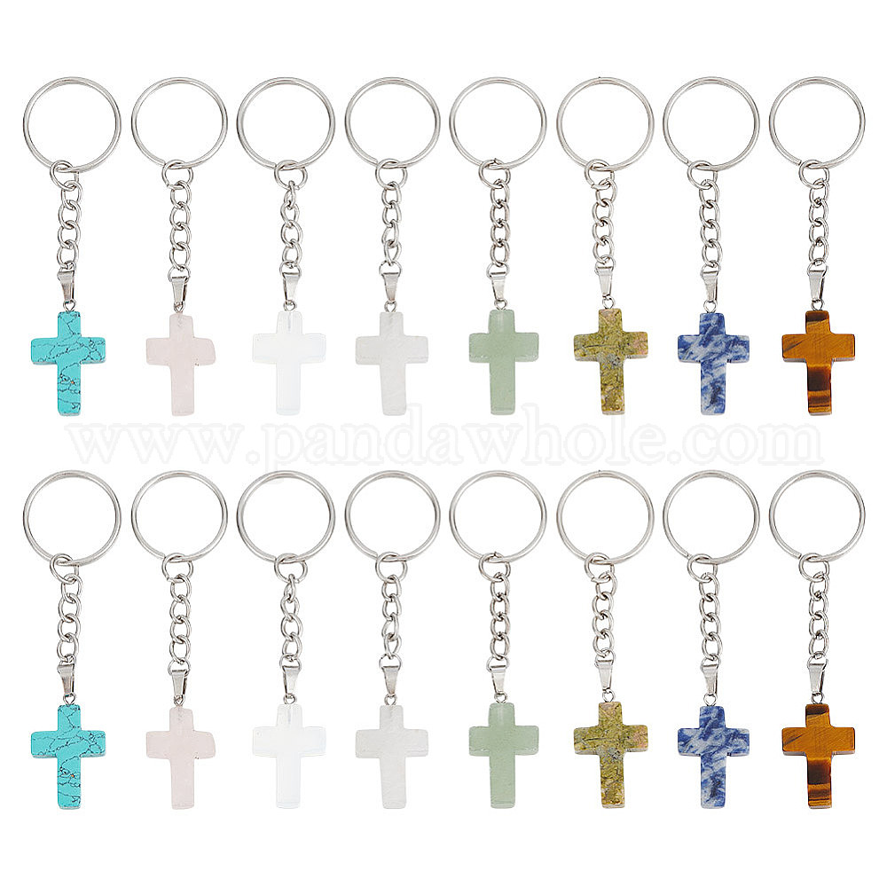 16шт 8 стили драгоценный камень крест брелок, с железными разрезными брелоками