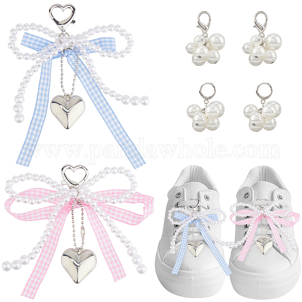 2 шт. 2 цветной полиэстер с цинковым сплавом брелок, с пластиковой имитационной жемчужиной, бант-сердце, с 4шт 2 стилями АБС-пластика, имитация жемчуга, подвесные украшения