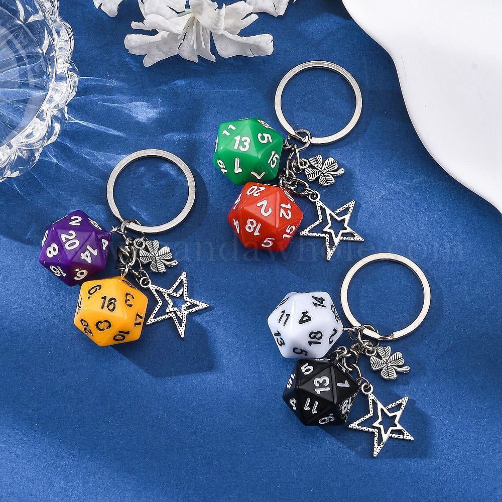 Брелок-подвеска из непрозрачного акрила в форме кубика, с подвесками из сплава и железными брелоками
