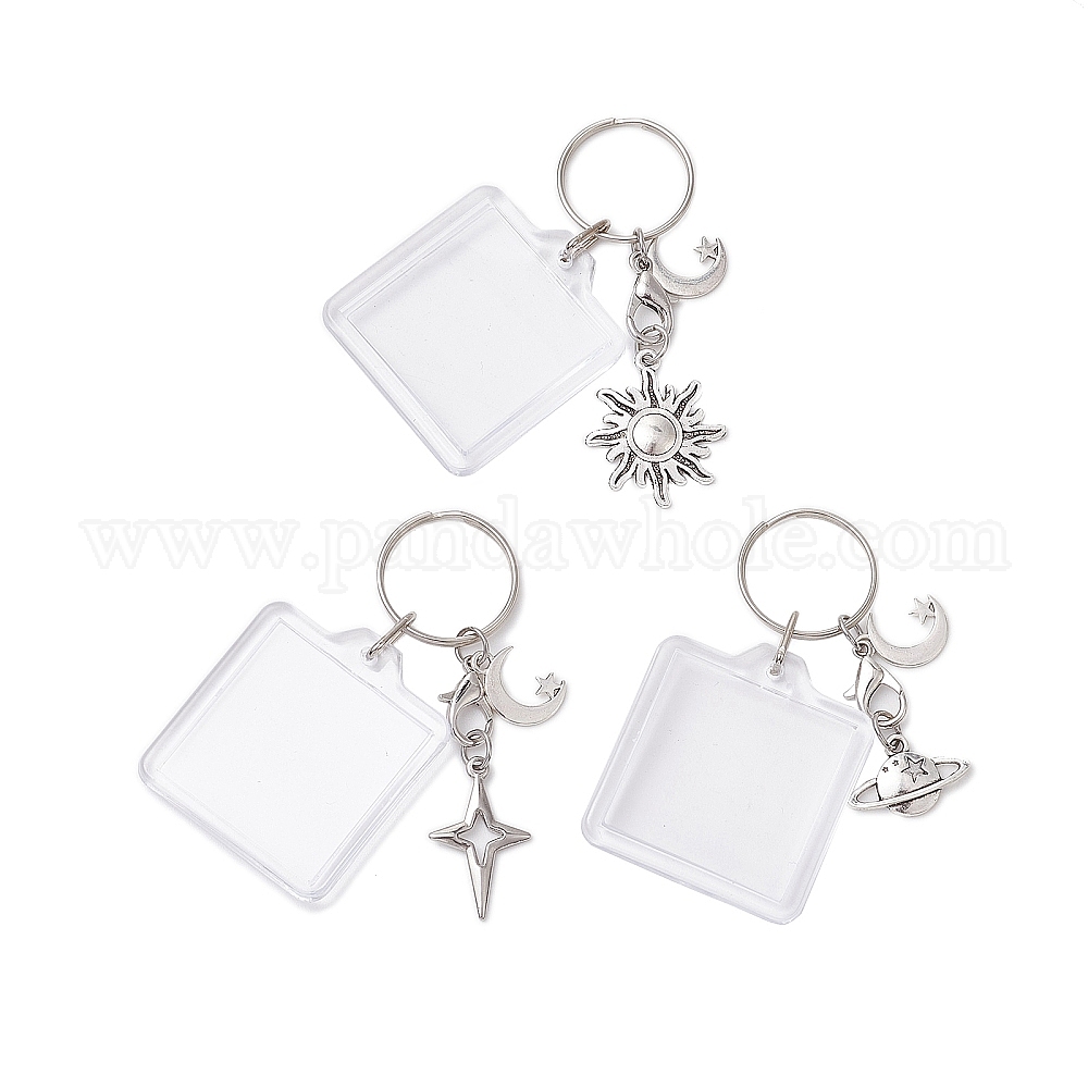 3шт. акриловый брелок, с подвеской из сплава и железными кольцами, разнообразные, звезда, солнце, планета