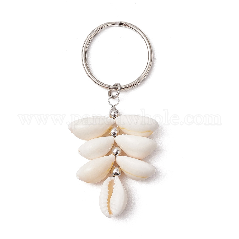 Натуральные бусины из ракушек каури с железными разъемными кольцами для ключей и латунными бусинами