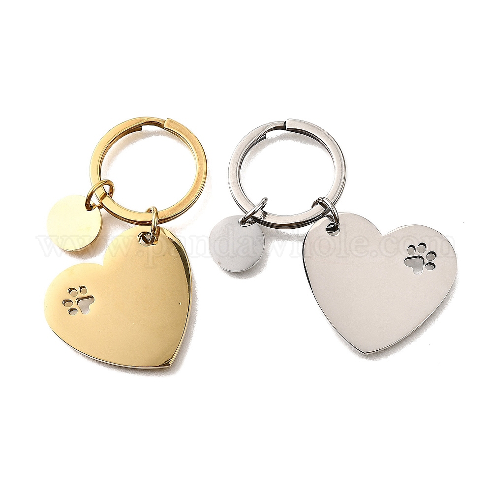 304 брелки из нержавеющей стали, сердце с отпечатками лапы собаки