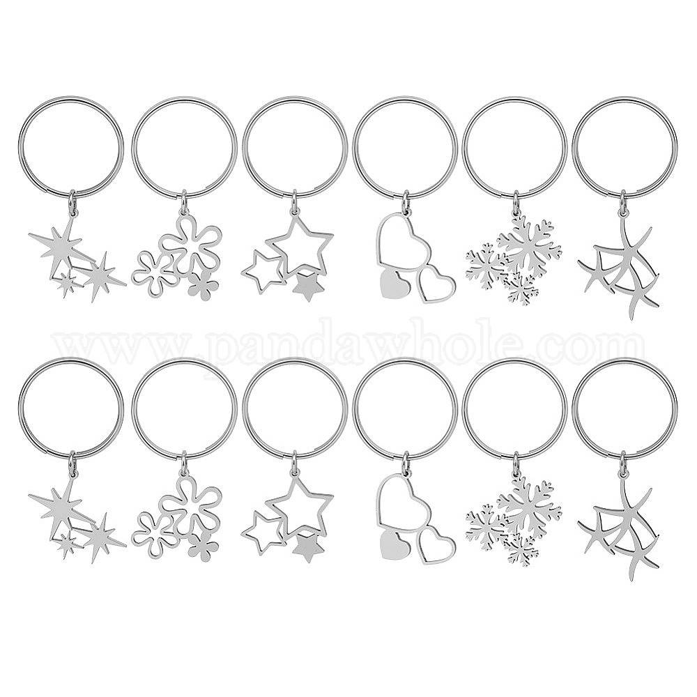 12 шт. 6 стили 201 брелок из нержавеющей стали, разнообразные, с кольцом