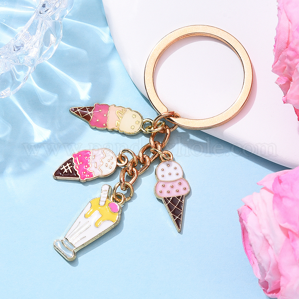 Брелок из эмалевого сплава, с железными кольцами, мороженое, золотые