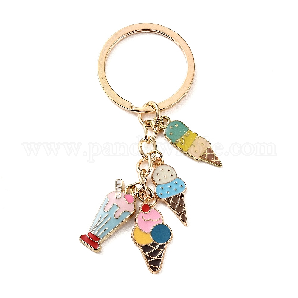 Брелок из эмалевого сплава, с железными кольцами, мороженое, золотые