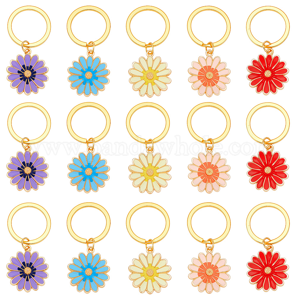 15шт 5 цвета сплав эмаль цветок брелок, с кольцом сплава