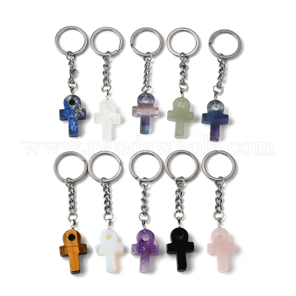 Смешанные натуральные и синтетические драгоценные камни с железными брелоками, крестик