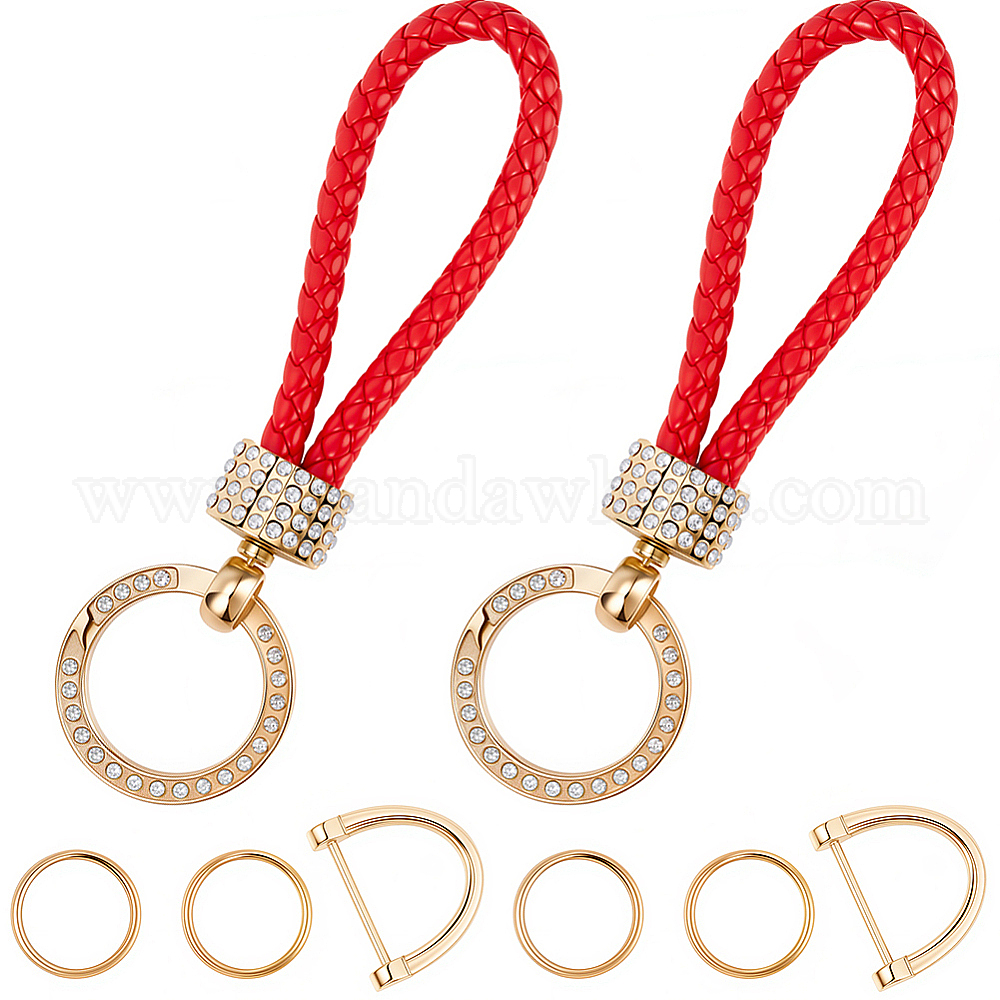 2Брелок из искусственной кожи и сплава со стразами, с отверткой, золотые