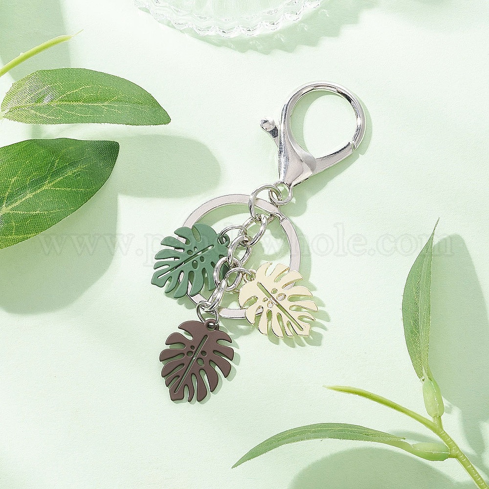 Брелки с подвеской из сплава с тропическими листьями, окрашенные в технике выпечки, с железными брелоками и сплавами