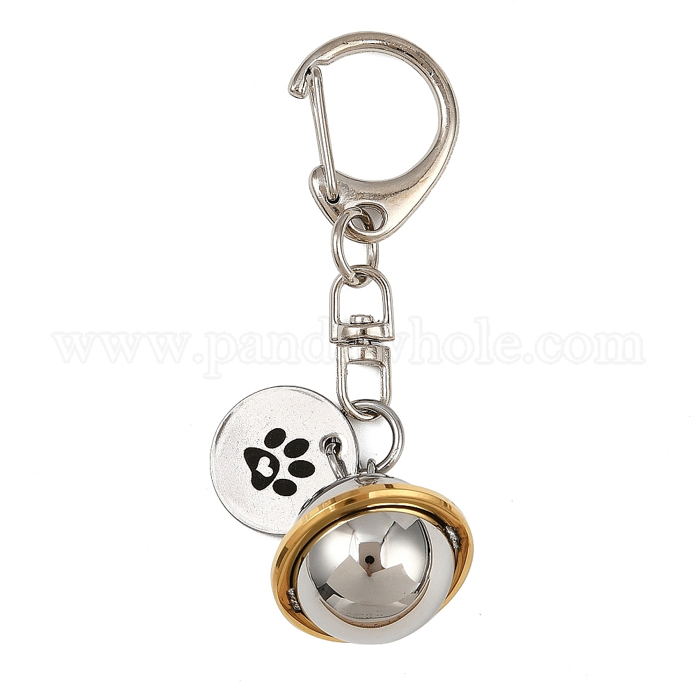 • Золотой & Цвет Нержавеющей Стали 304 брелки из нержавеющей стали, небесное тело, урну можно открыть, отпечаток лапы, золотые и нержавеющая сталь цвет, 65 мм