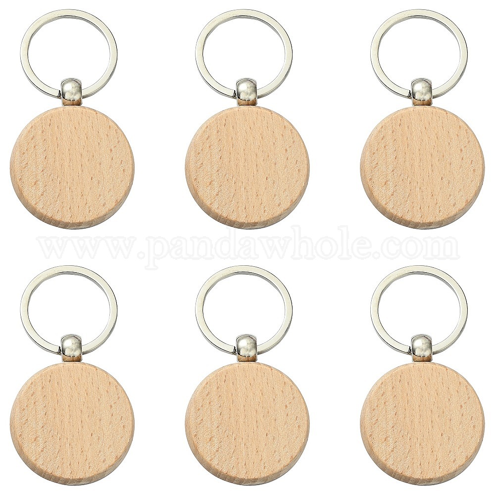 • Цвет Древесины 1 набор 20 шт. брелки из нержавеющей стали и дерева бука, плоско-круглые, платина, деревесиные, 7.5x4x0.7 см