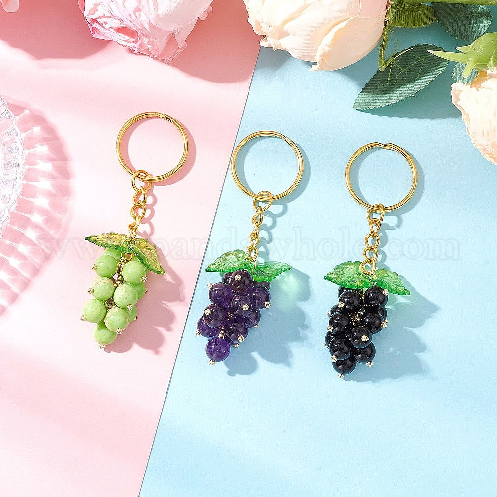 3шт. брелоки из императорской яшмы, аметиста и черного оникса, с фурнитурой из сплава брелок кольца, винограды