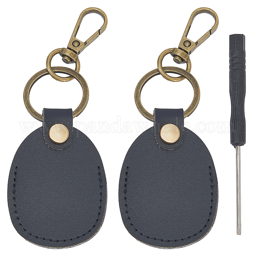 Брелки из искусственной кожи, с железной отверткой, овальные, платина