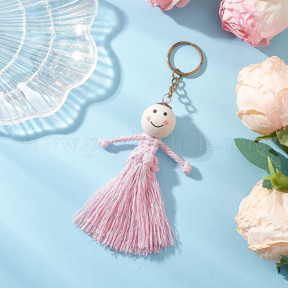 Брелки из хлопка, с железными кольцами для ключей и деревянными бусинами, золотые