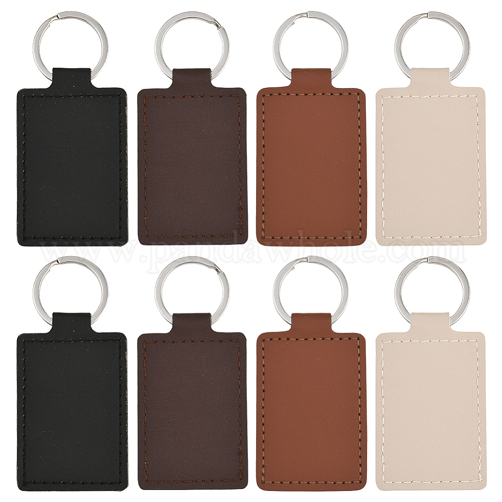 16шт 4 цвета искусственная кожа брелки, литыми кольцами, прямоугольные, платина