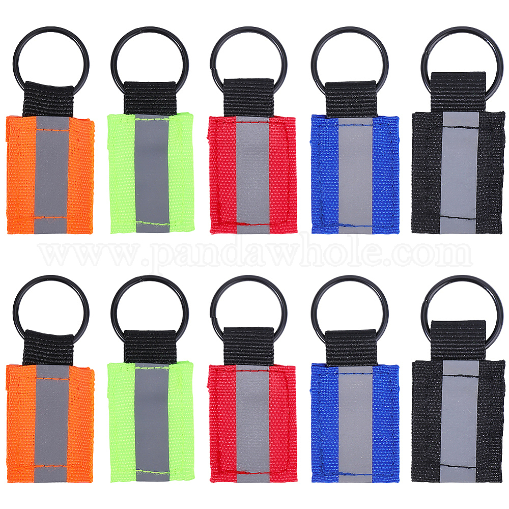 10шт. 5 цвета прямоугольные полиэстерные брелоки-подвески, с железным кольцом, чёрные