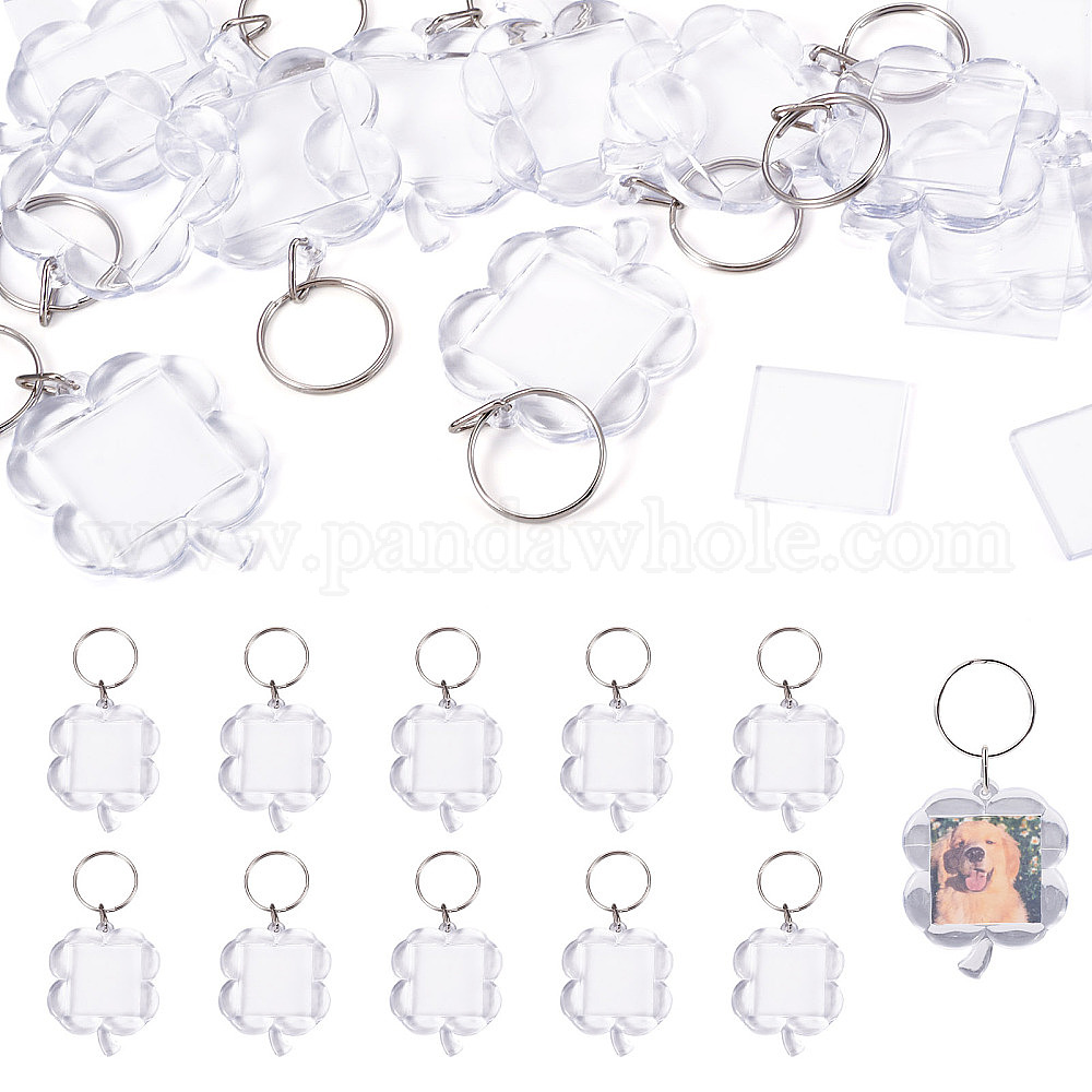 • Прозрачный 10 акриловые брелки для ключей, с железными кольцами, клевер, платина, прозрачные, 80 мм