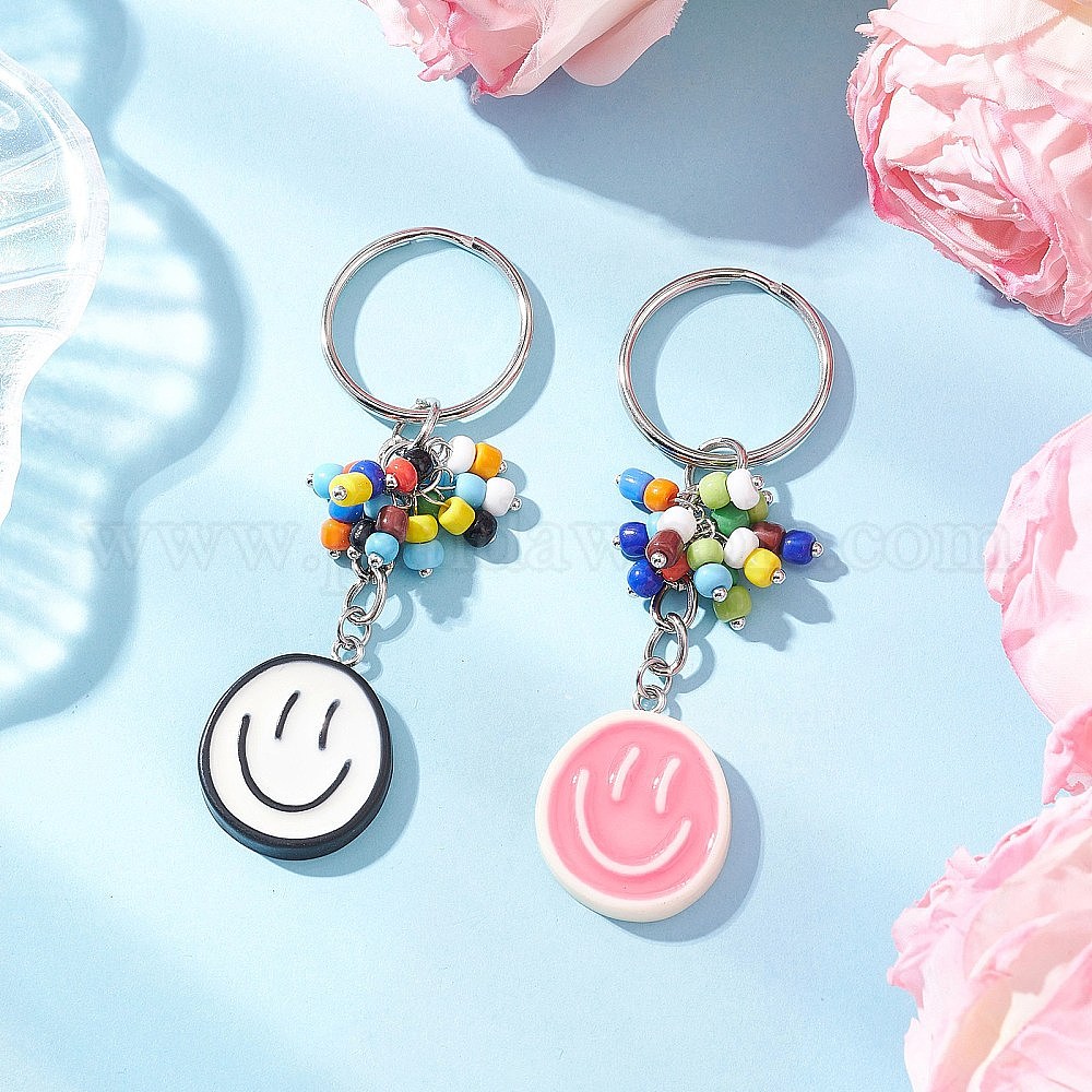 2шт. непрозрачные эмалевые брелки из смолы, улыбающееся лицо, со стеклом и железом