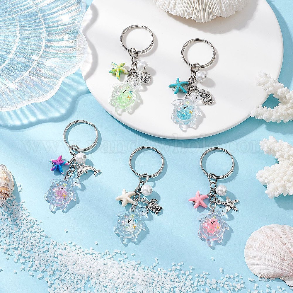 5 шт. светящиеся прозрачные акриловые брелоки, с железными разрезными брелоками, черепаха, светится в темноте, платина