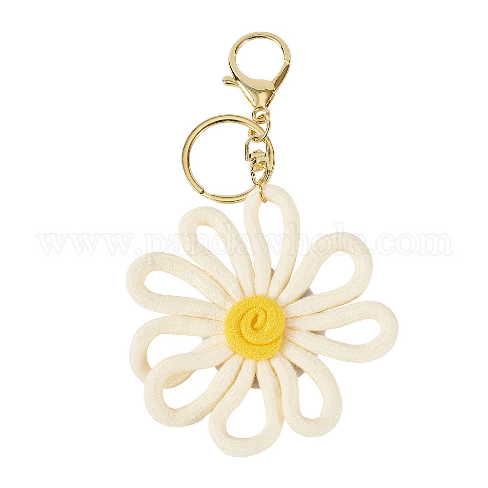 Брелок из полиэстера с цветком, с застежкой из сплава и железными кольцами, золотые