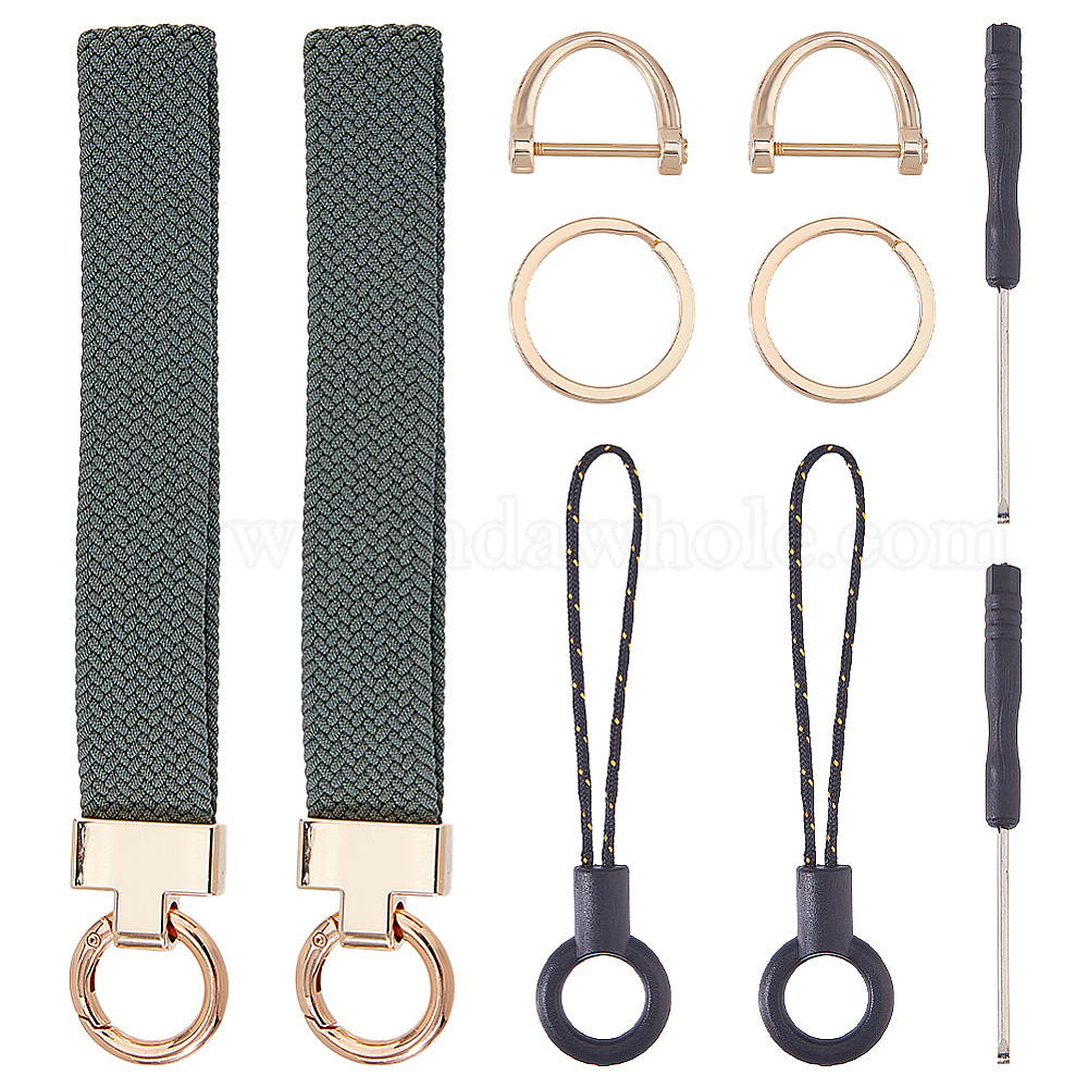 2Наборы брелоков из нейлона и цинкового сплава, для аксессуаров сумки для ключей от машины, с отверткой, подвесное кольцо, с раздельными брелоками, золотые