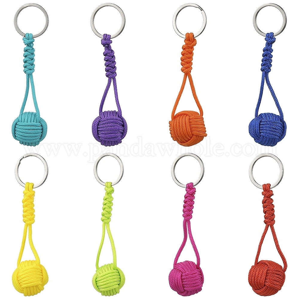 8 шт. 8 цветные полиэстеровые круглые брелоки, со шнуром из спандекса и деревом, с 304 кольцами для ключей из нержавеющей стали, цвет нержавеющей стали (036T19)