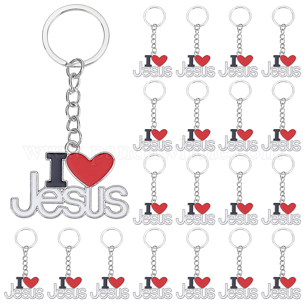 24шт. брелоки-подвески из сплава с эмалью, С кольцами, слово i love jesus