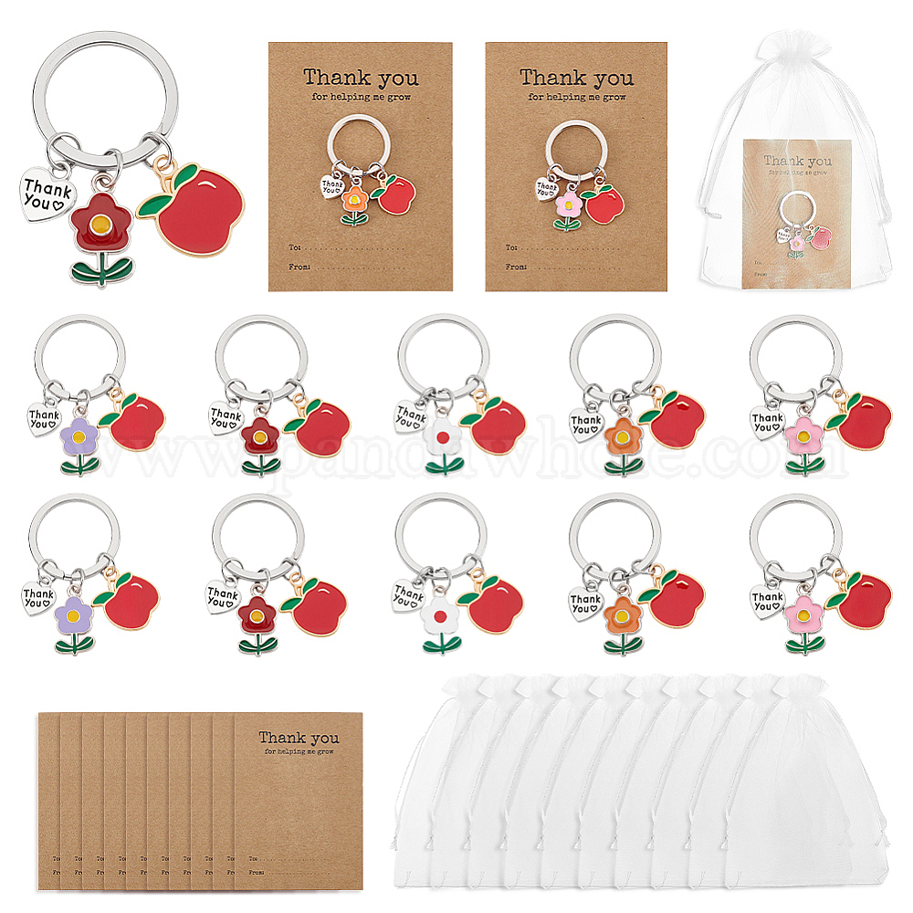 Брелки с эмалированными цветами, яблоками и сердцами, с железными разрезными брелоками, платина, включая подарочные пакеты из органзы, карты дисплея крафт-бумаги, платина