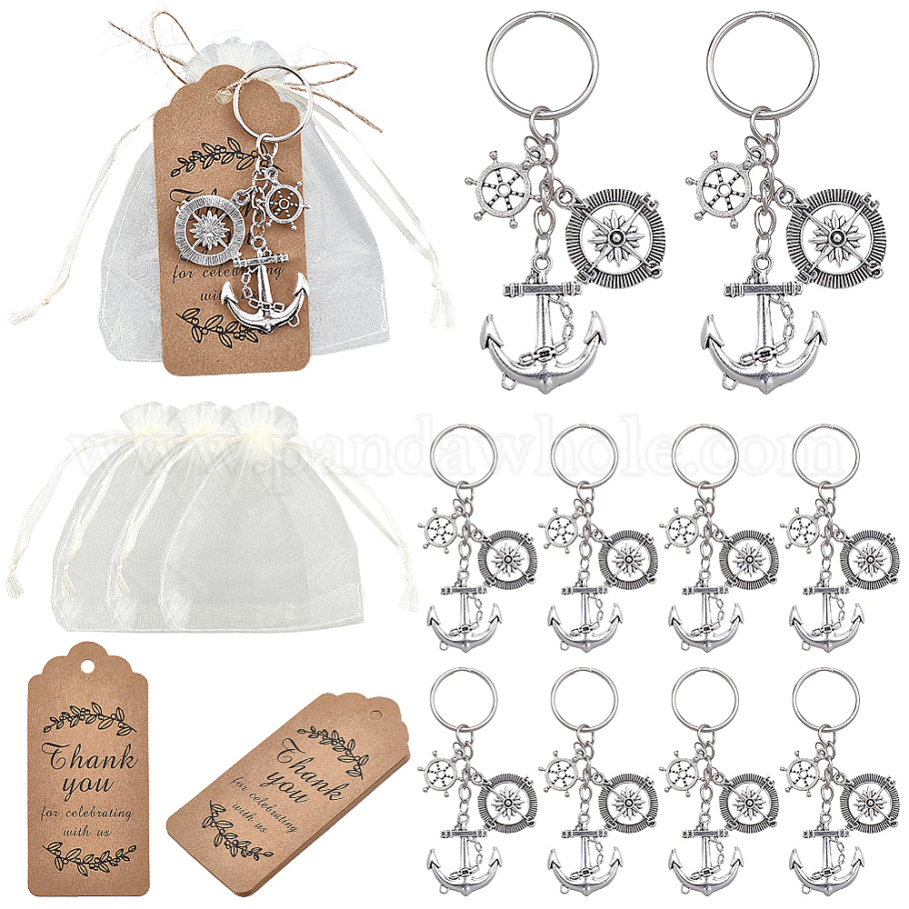 • Античный Серебристый & Платиновый 10 брелок из сплава, с железной фурнитурой, якорь и штурвал, в комплекте 10шт. подарочных мешочков из органзы и подарочных этикеток, а также 10м отрезов джута., старинное серебро и платина, 1~85 мм