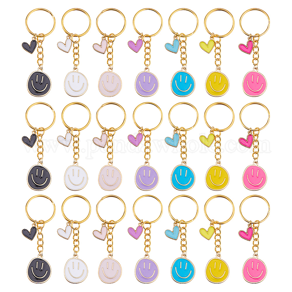21 шт. 7 цвета сплава эмали улыбающееся лицо с кулоном в виде сердца брелки, с железными разрезными брелоками, золотые
