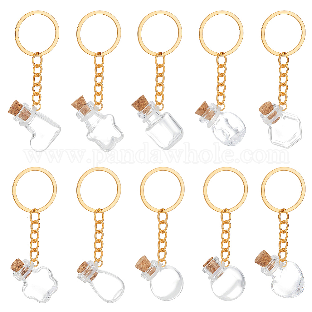 • Золотой 10шт. стеклянные бутылки-брелки, с железными кольцами, золотые, 80 мм