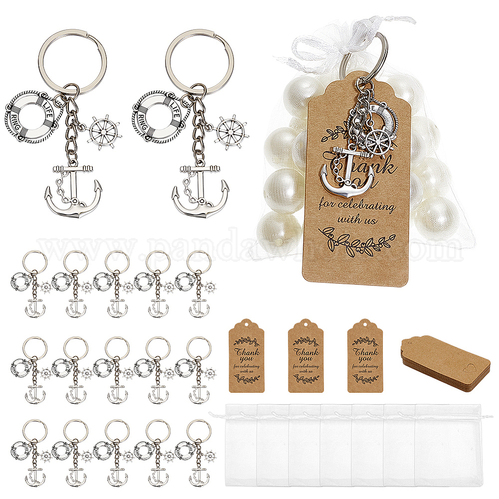 72шт. литые брелоки, якорь, с железными кольцами и подарочными пакетами из бумажных карточек и органзы