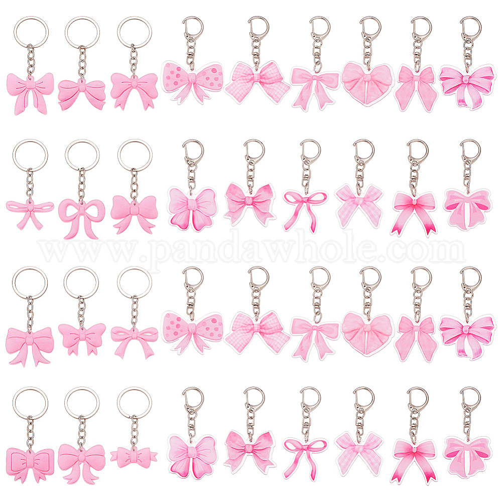 36шт. акриловые брелоки в виде бантиков, с кольцом ключевой железа, платина