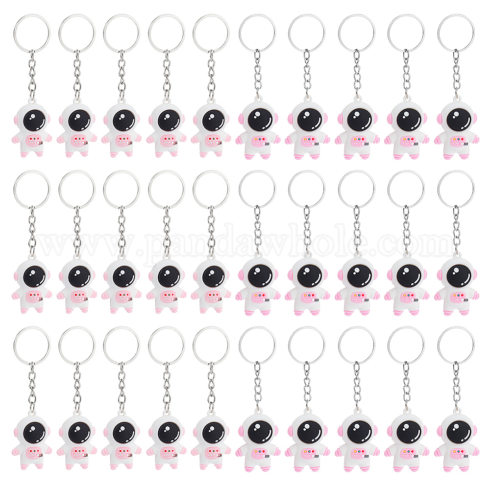 30шт. 2 стили брелоков-подвесок в виде космонавта из ПВХ и железа, для брелков, кошелек, украшение для рюкзака, платина