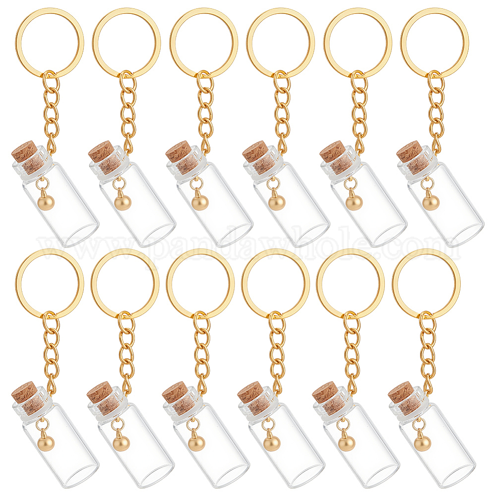 • Золотой 16шт. брелки в виде стеклянных бутылок, с железными кольцами, золотые, 84 мм