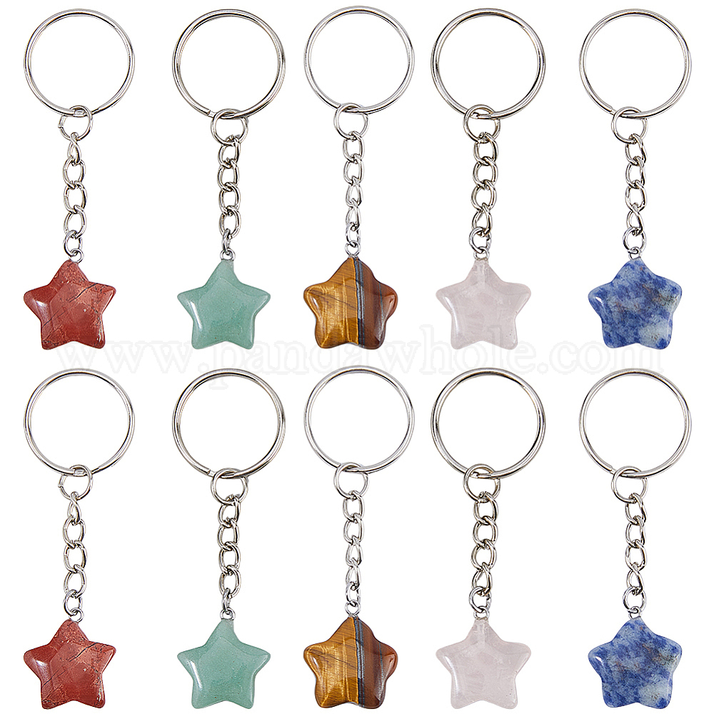 10 шт. 5 брелоки из натурального камня разных цветов, с железными кольцами, платина
