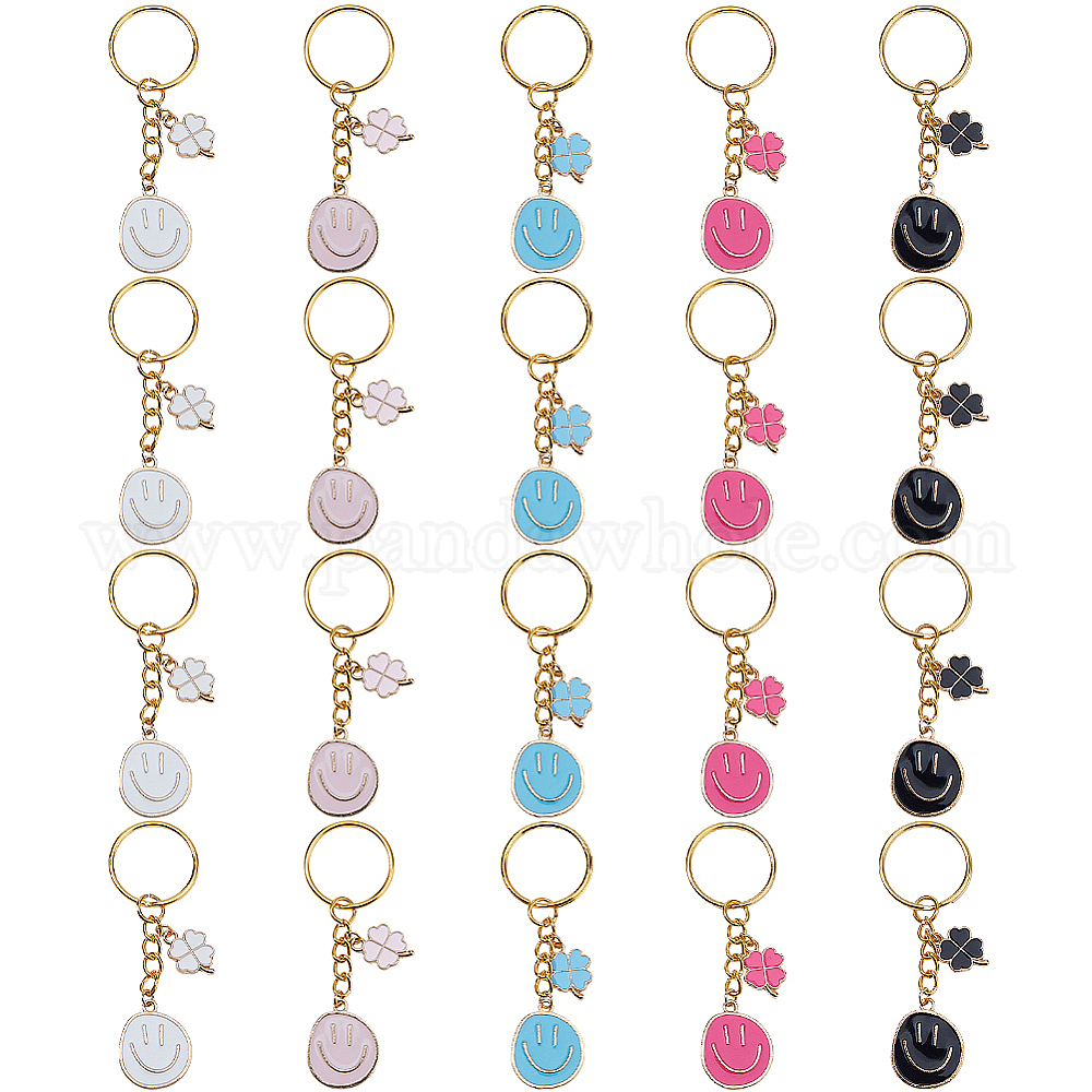 • (52) Непрозрачная лаванда 20 шт. 5 брелоки с изображением улыбающегося лица из сплава и эмали разных цветов, с железными кольцами, золотой свет, разноцветные, 77 мм