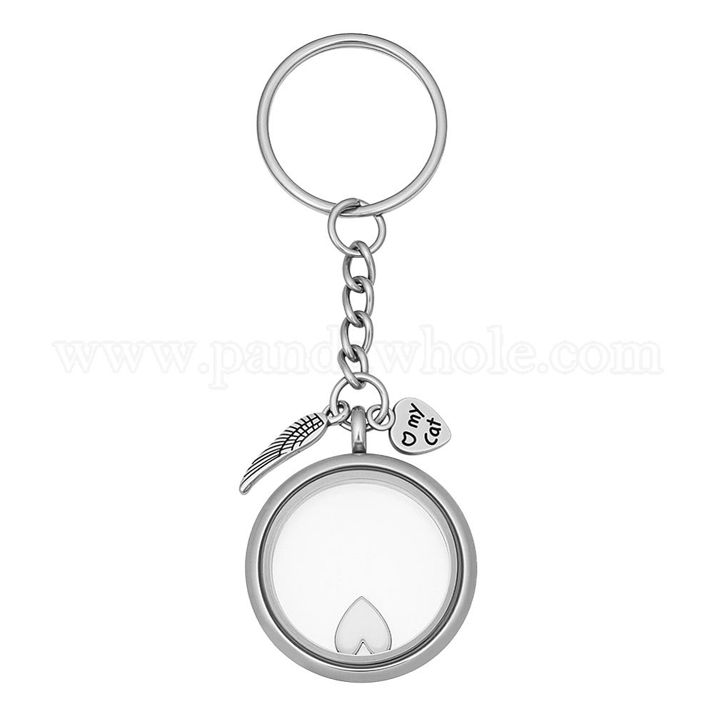 • Платиновый & Цвет Нержавейки 304 брелоки-медальоны из нержавеющей стали, с кольцами из нержавеющей стали, плоско-круглые, платины и нержавеющая сталь цвет, 89 мм