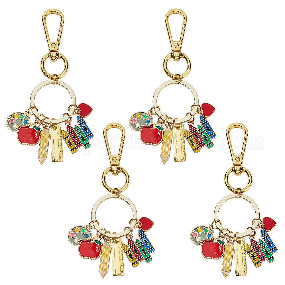 4 шт. брелок ко Дню учителя из сплава с эмалью красного яблока, с поворотными застежками сплава, золотые