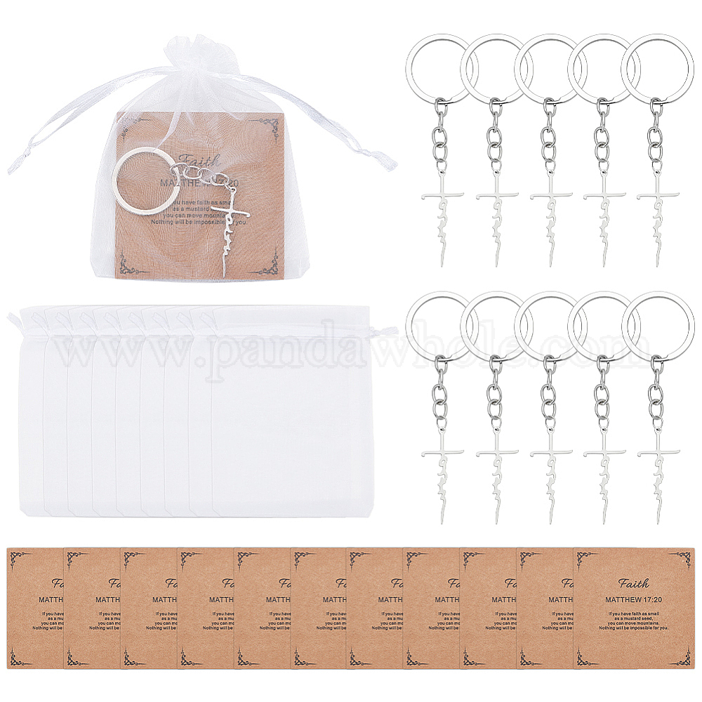 Брелоки-подвески в виде креста из нержавеющей стали, с карточками для демонстрации ювелирных изделий из крафт-бумаги и мешочками из органзы.