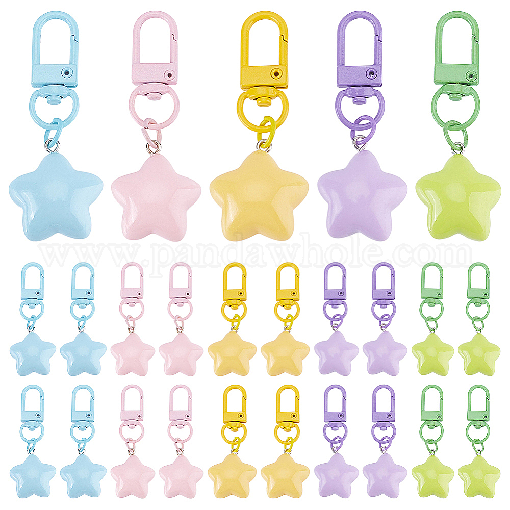 25ps 5 брелоки в виде звезд из смолы разных цветов, с поворотными застежками сплава