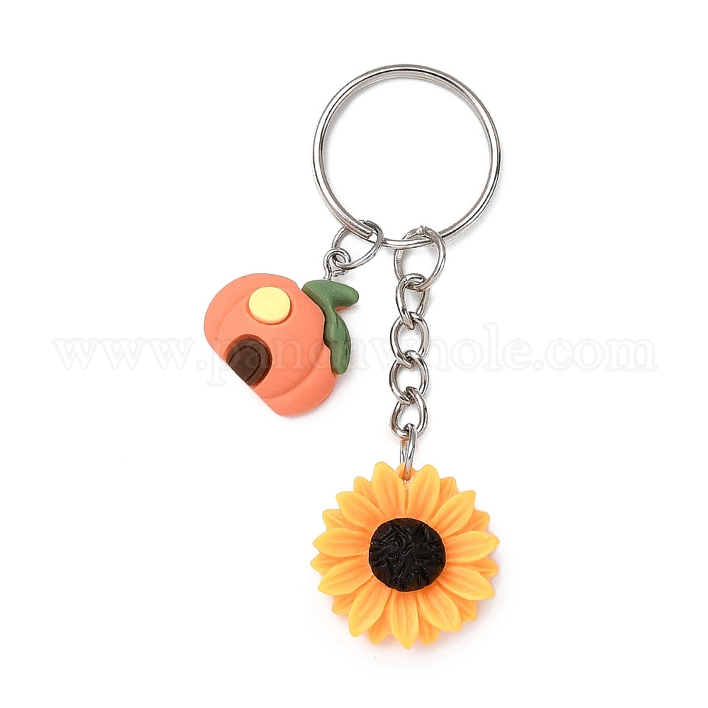 Брелки с подвесками из смолы подсолнечника, с железными разрезными брелоками, платина