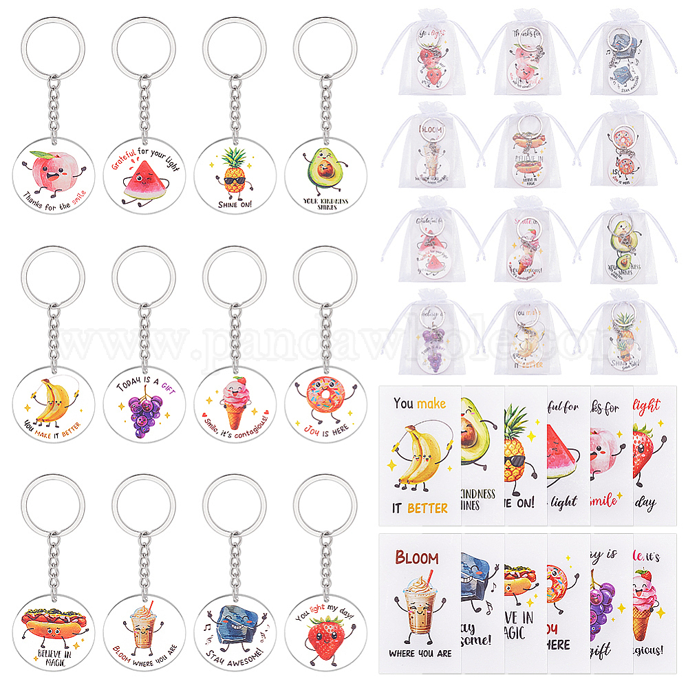 60 акриловые брелки для ключей, с железными кольцами, разнообразные, 60бумажные брелки для показа карточек, 60шт. прямоугольные мешочки из органзы с завязками