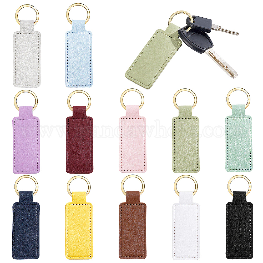 60шт 12 цвета искусственная кожа брелки, с железными разрезными брелоками, прямоугольные, золотые