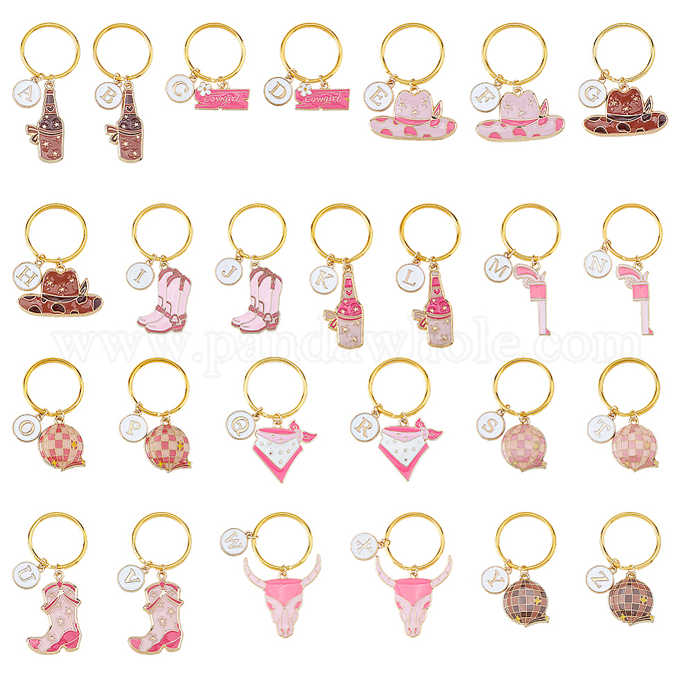 • (52) Непрозрачная лаванда 26шт. брелки из эмалевого сплава, с железными кольцами, ковбойская тема, золотые, разноцветные, 59 мм