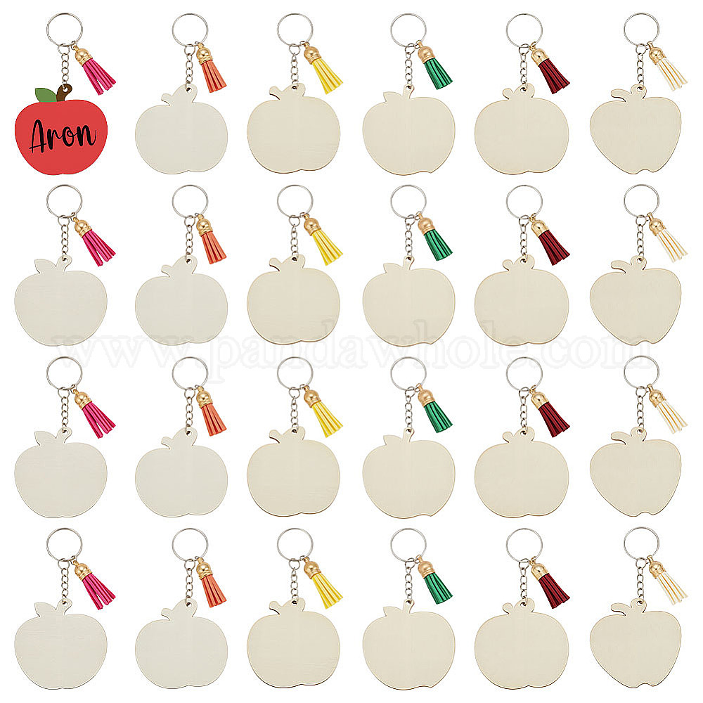 24шт. брелок из дерева, яблоко, с подвеской-кисточкой и железными кольцами